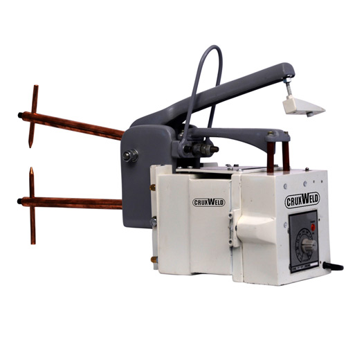 手操作点焊机-便携式手点焊机-印度最好的质量,稳定的手操作点焊机制造商。这种点焊机使用方便,适用于非常小的点焊面积。该焊机是在较小的面积和较小的点非常特殊的使用焊机。工件在受力点处加筋。变压器直接安装在机身上,便于机器的移动和工作。原理与其他点焊相同,当两个表面被电极紧紧握住时,恒定的大电流在尽可能短的时间内通过,使点焊区域在重新凝固时熔化。制造过程中使用的金属很坚固,电极是电流和热量传递的合金的真正混合物。变压器采用铜线绕组,绝缘性能好,使用效果好